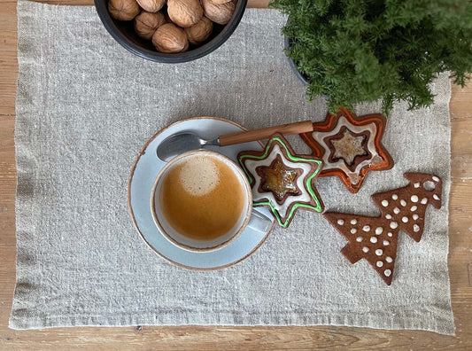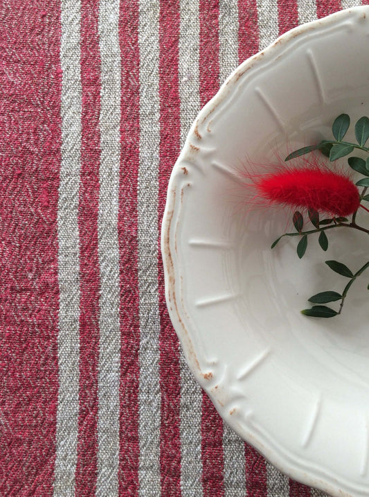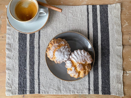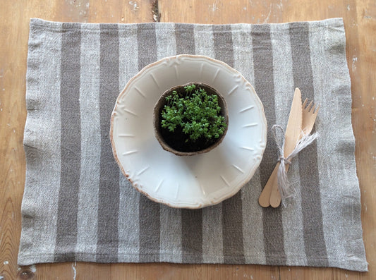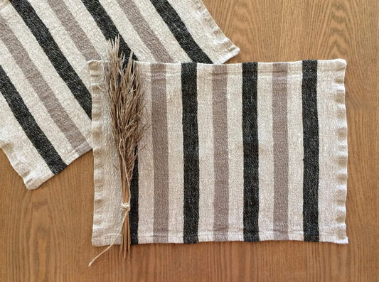 Natural Linen Placemats with Beige and Dark Beige Stripes
