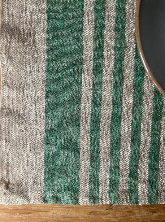 Vintage Green Striped Linen Placemats Set in Rustic Style
