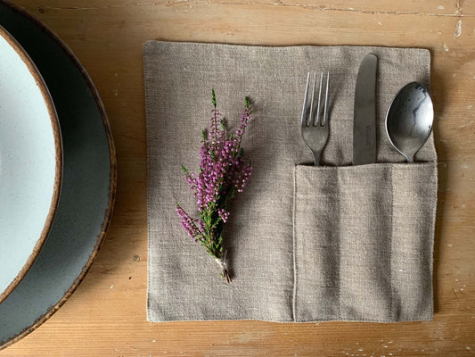 Handmade Linen Cutlery Holder for Rustic Table Decor