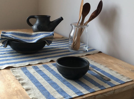 Blue Gray Stripe Linen Placemats for Eco-Friendly Dining